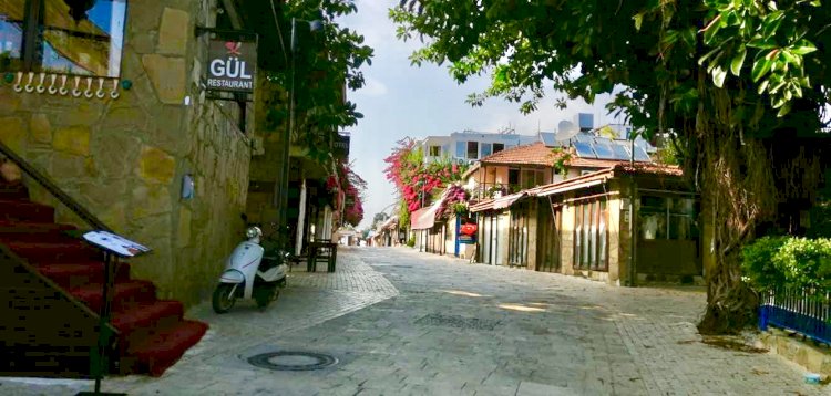 Aracımızı Antik Kentin girişine bırakıp yola koyulduk. Açıkçası aklımda bölgenin yoğun olacağı ve sosyal mesafeye nasıl dikkat edeceğim olmuştu. Yürüyerek kentin içinden geçip, sahile indiğimiz çarşıya geldiğimde sakin sessiz bir ortamla karşılaştık. Adeta in ve cinler top oynuyordu. Dükkanların neredeyse çoğu kapalı. Açık olanlarında çalışanları dışarıda oturmuş, kara kara düşünüyordu.