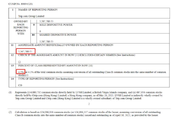 Islands şirketi ve 26 Mayıs 2021 itibariyle doğrudan Ctrip.com'a ait 687.056 adi hisse senedi. LVSH Limited, dolaylı olarak tamamen Trip.com Group'a aittir ve Ctrip.com, Trip.com Group Limited'in tamamına sahip olduğu bir yan kuruluştur.
